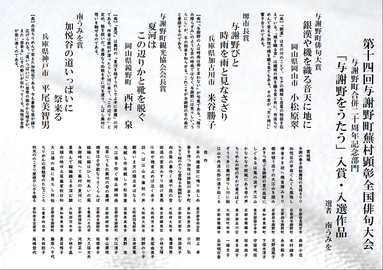 ≫第14回 与謝野町 蕪村顕彰全国俳句大会